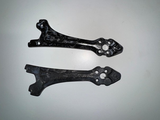 The result was a forged carbon drone arm, produced using a custom 3D-printed mold. This prototype validated the approach and provided practical insights into composite production for drone components.